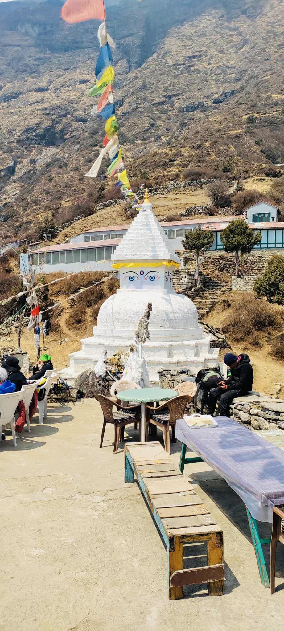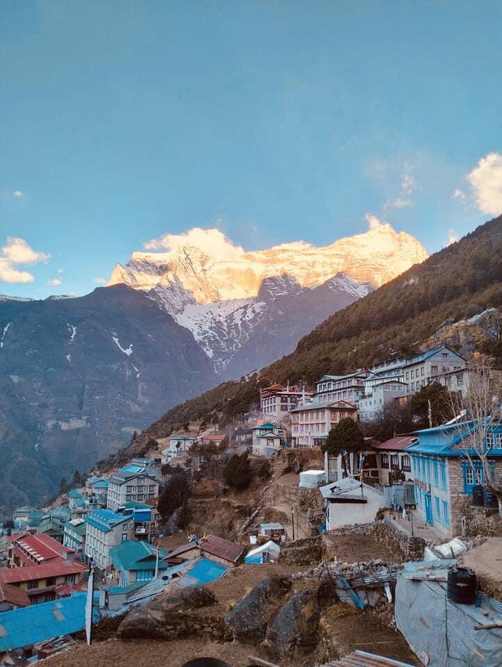Jour 04 NAMCHE D'ACCLIMATATION 3860M Journée d’acclimatation. Découverte de la capitale du pays sherpa. possibilité de visiter le musé Sherpas , découverte de l’Ama Dablam, de l’Everest, du Lothse , à Khumjung Possibilité de visiter la Hillary High School et le Khunde Hospital, Retour à notre lodge. 4 h de marche. Hébergement : lodge. Repas inclus : matin, midi, soir. Dénivelé positif 300 M et Négatif 300M